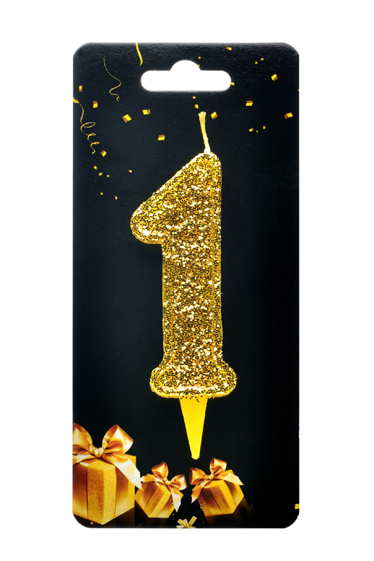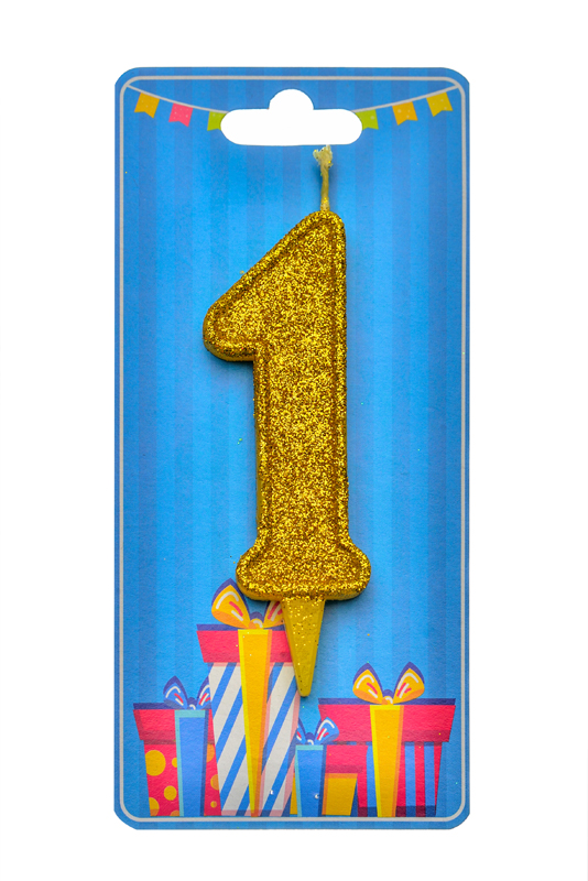 Свічка для торта "Цифра 1" золото блиск