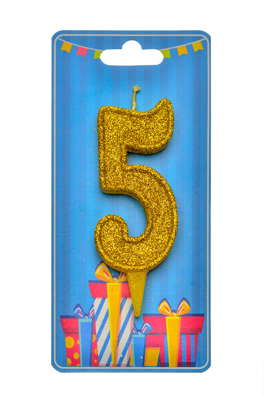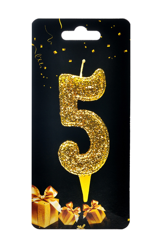 Свічка для торта "Цифра 5" золото блиск