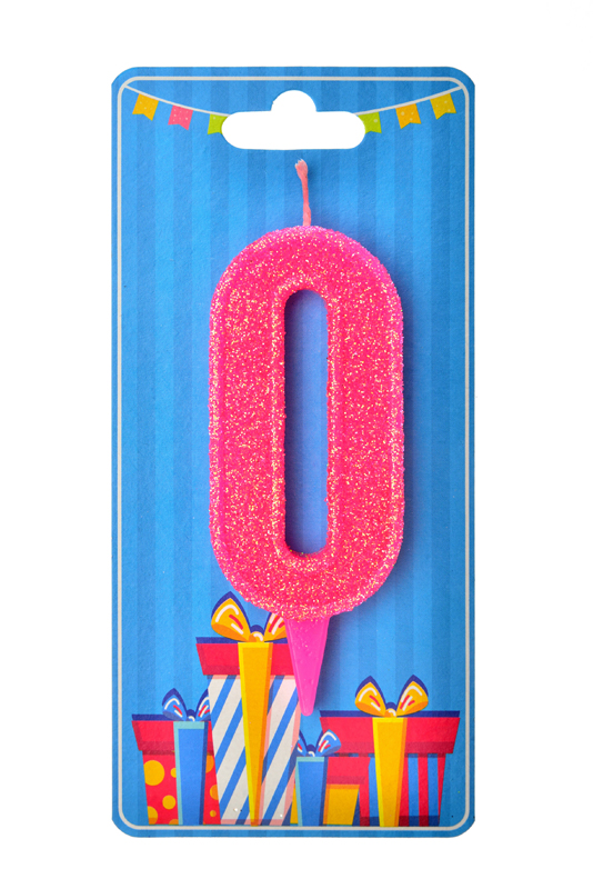 Свічка для торта "Цифра 0" рожева блиск