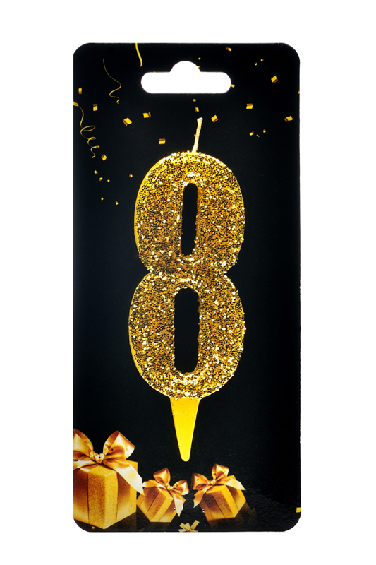Свічка для торта "Цифра 8" золото блиск