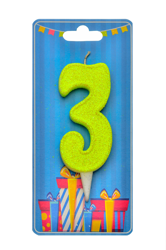 Свічка для торта "Цифра 3" лимонна блиск