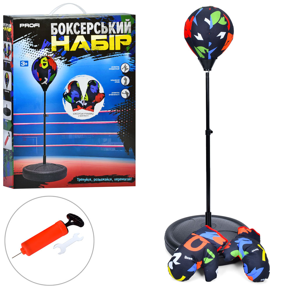 Боксерський набір 666-222 груша на стійці (70-105см),підставка,рукавиці 1пара,насос,кор.,19-54-8,5см