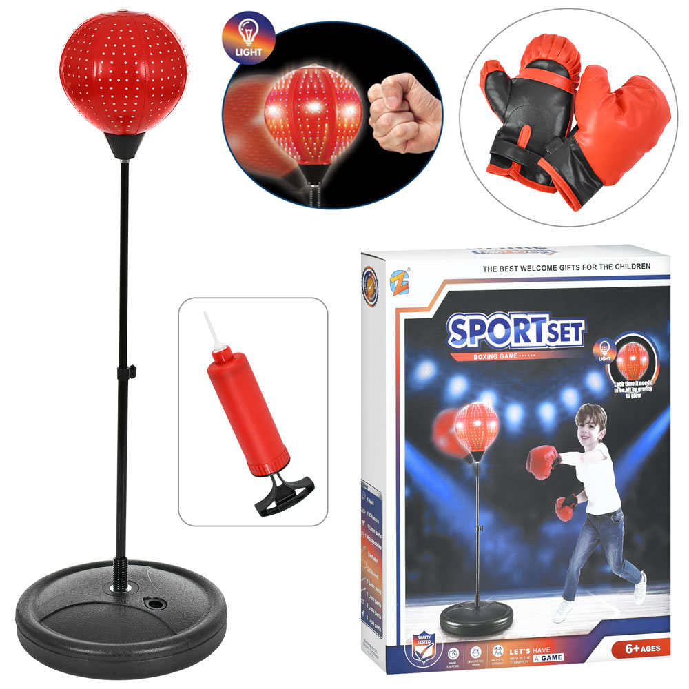 Боксерський набір MR 1508 на стійці, груша, 2 рукавички, насос, світло, бат.(табл.),кор.,37,5-47-8см