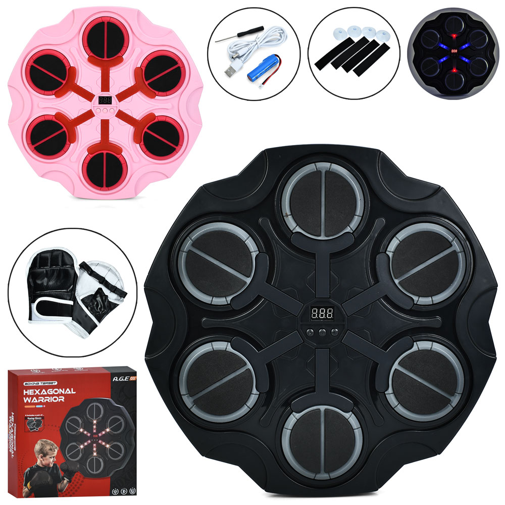 Боксерський набір MS 4777 тренажер-мішень,6 цілей,ел.табло,ВТ,3 кольори,Type-C,9реж.,муз.,світло,кор