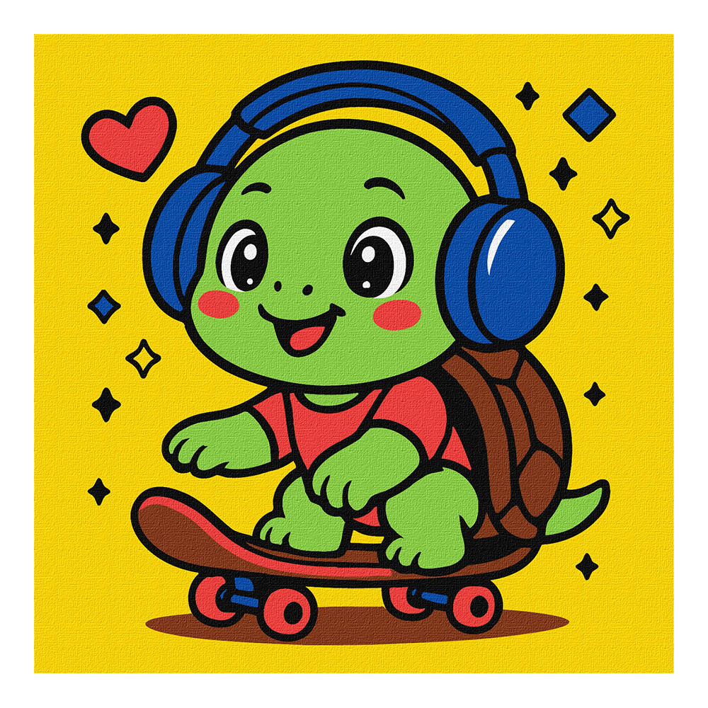Набір для розпису по номерах для дітей "Черепашка на скейті" 25х25см