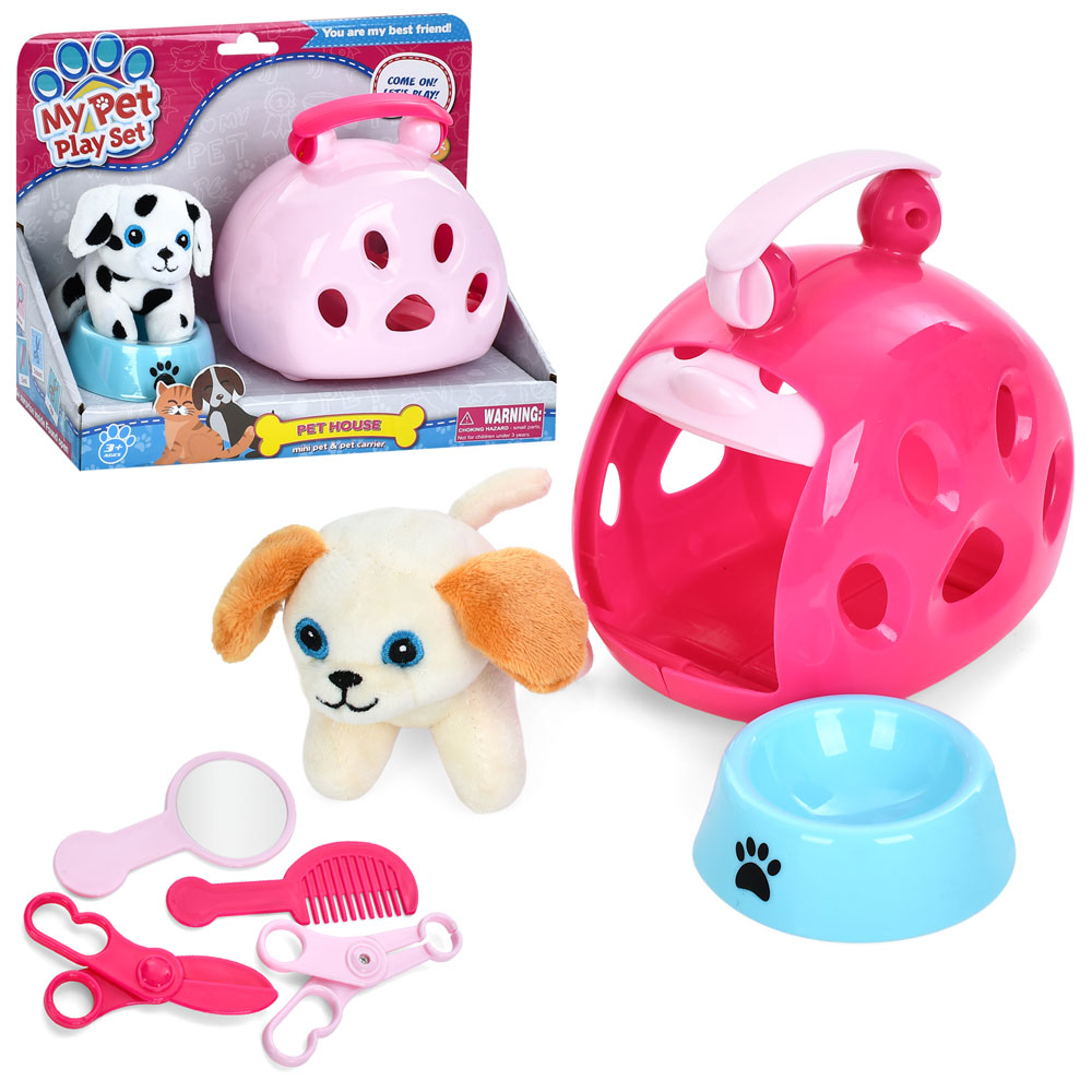 Тварина в переносці BX101 собака,наб.грумера(ножиці,гребінець),посуд,переноска,2види,кор.,24-19-11см