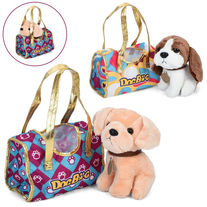 Тварина 7622-113A-14A собака, плюш, сумка, 2 види, кул., 20-23-9 см.