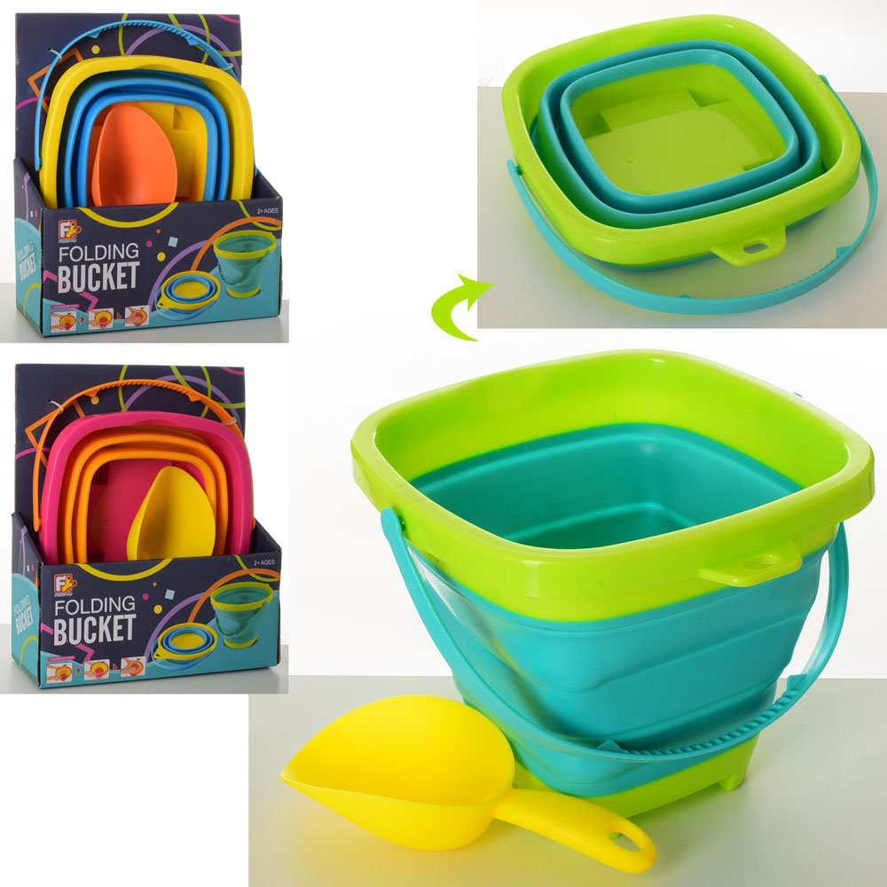 Набір для пісочниці 890-1A відерце-складане, лопатка, 3 кольори, кор., 22-25,5-7 см.