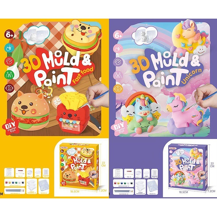 Набір для творчості S138-33-34 гіпс, форми, фарби,пензлик,2 види(фаст-фуд,єдиноріг),кор.,18,5-22-7см