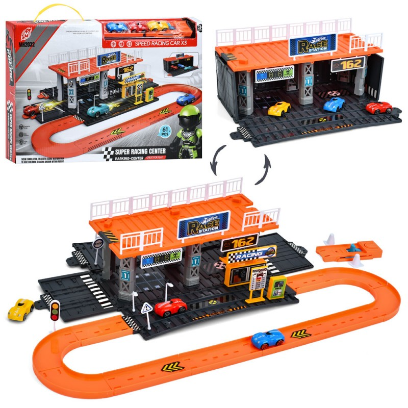 Гараж MH2032 2 поверхи, запуск, машинки 3 шт., 61дет., кор., 42-28,5-5,5 см.