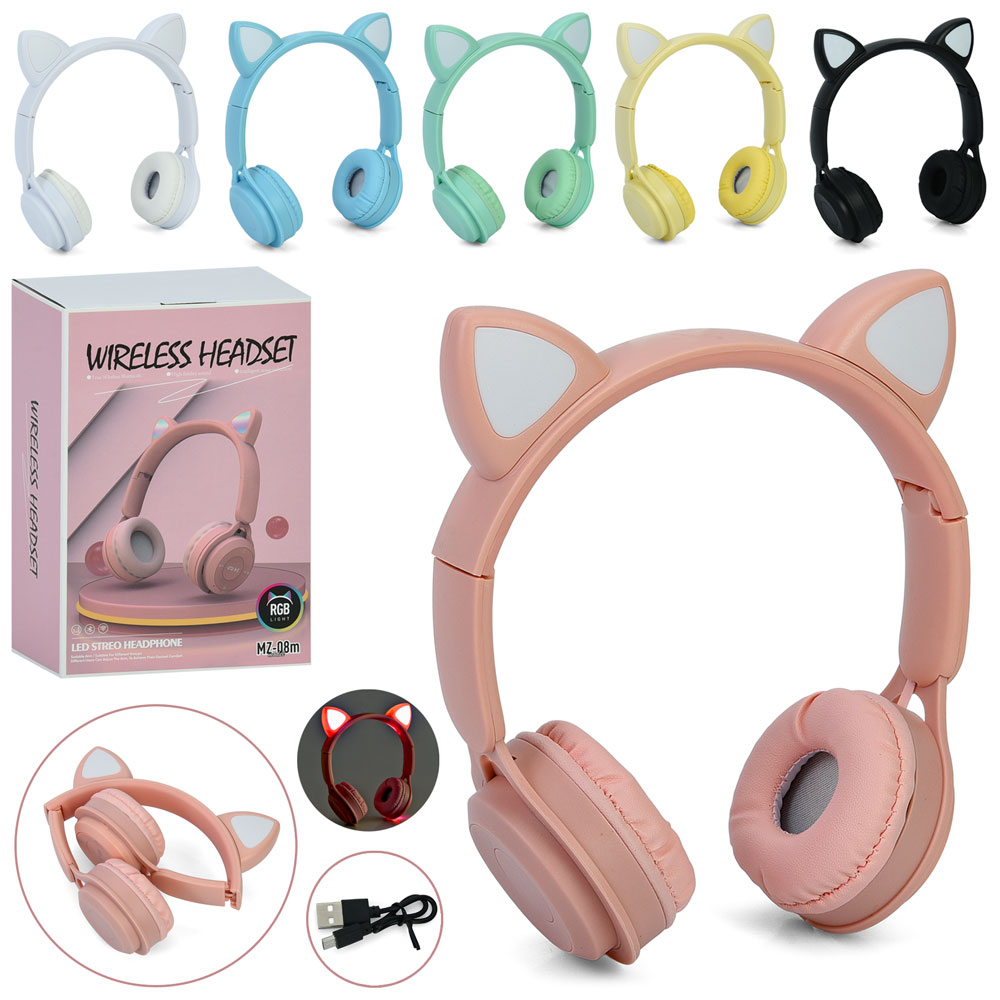 Навушники MZ-08M вушка,бездрот.,Bluetooth,акум.,TFкарта,FM,USB,мікс кольорів,світло,кор.,12-17,5-7см