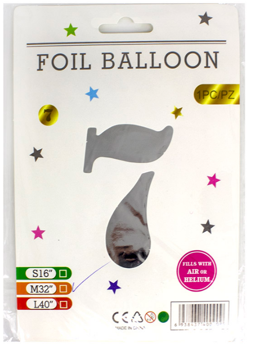Кульки повітряні,фольговані,срібло, 32`,цифри, 7, 1шт/уп., Імп