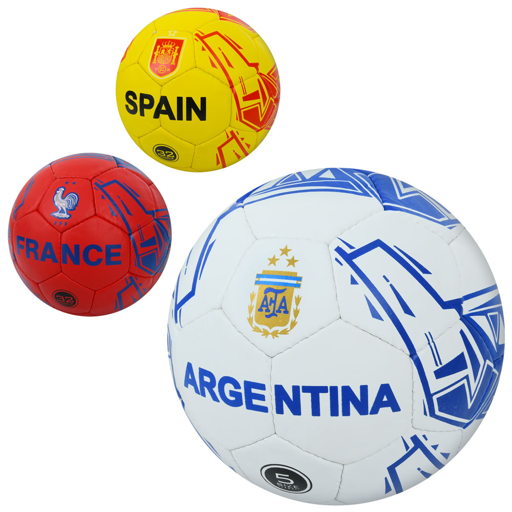 М'яч футбольний 2500-276 розмір 5, ПУ1, 4мм, ручна робота, 32 панелі, 400-420г, 3 види (країни),кул.