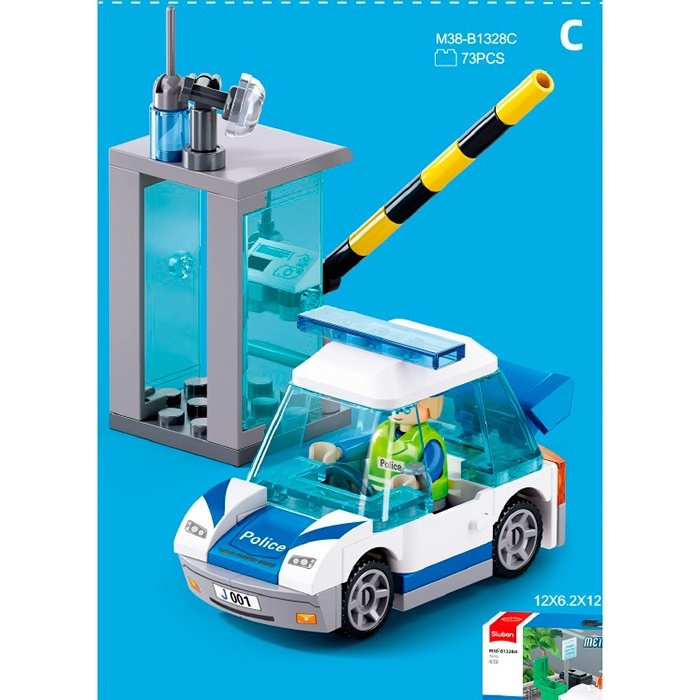 Конструктор SLUBAN M38-B1328C міська серія,шлагбаум,поліцейська машина,фігурка,73дет.,кор.,12-12-6см