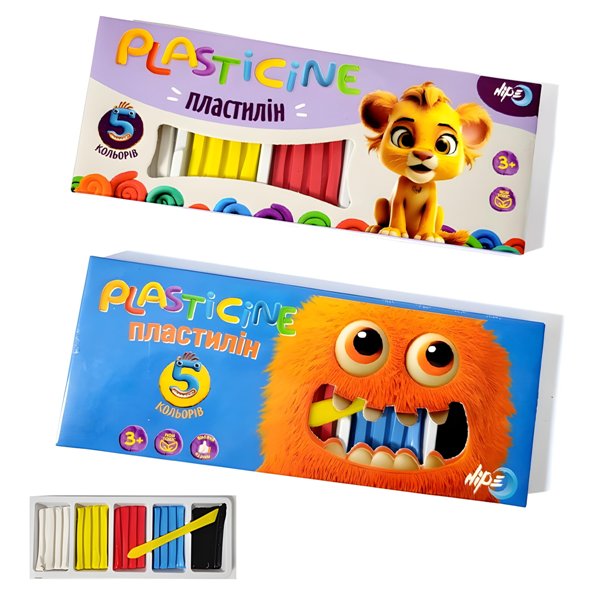Пластилін, 5 кольорів, 100г, зі стеком, Hipe TM