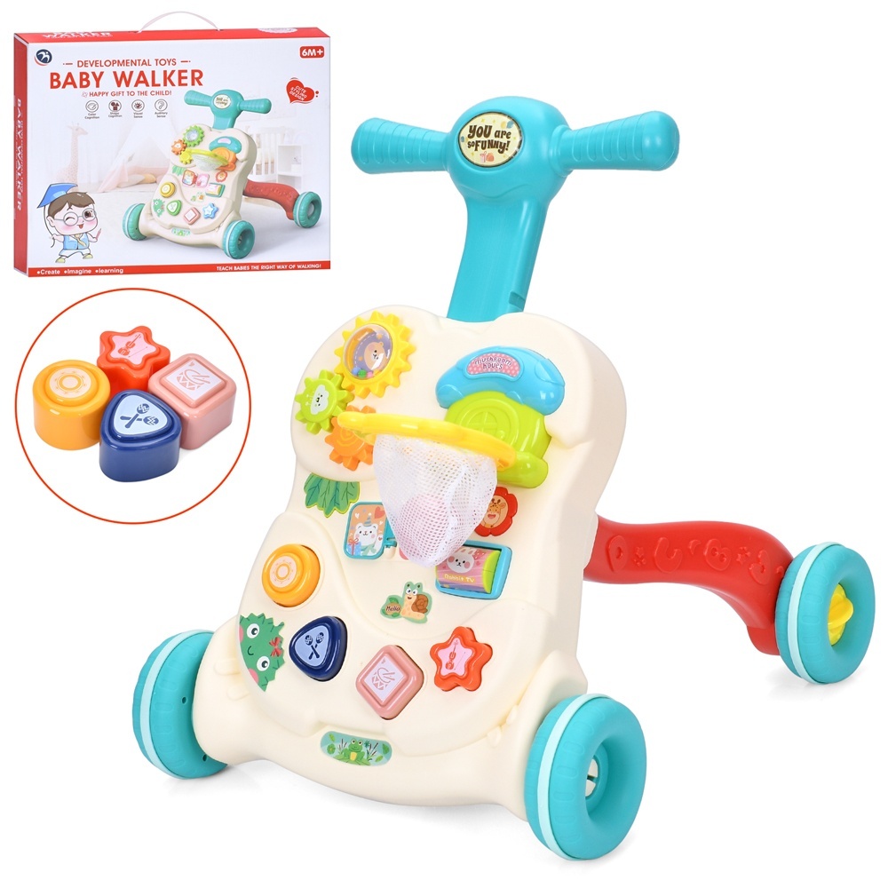 Каталка-ходунки 888Q сортер,шестерні,годин.,лабіринт,2кольори,кермо-муз.,світло,бат.,кор.,33-35-12см