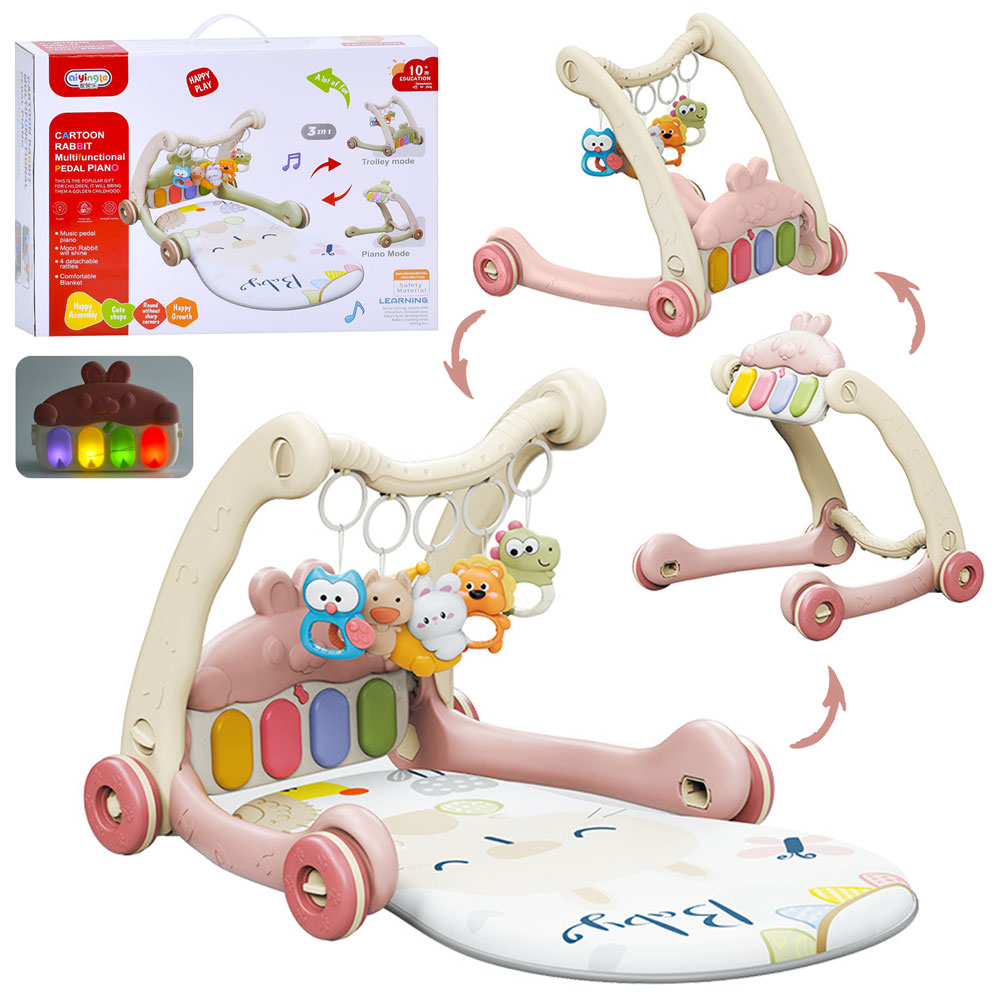 Каталка-ходунки 368-65R 2в1 килимок,підвіски 5шт.(брязкальце,місяць-світло),піаніно,муз.,світло,бат.