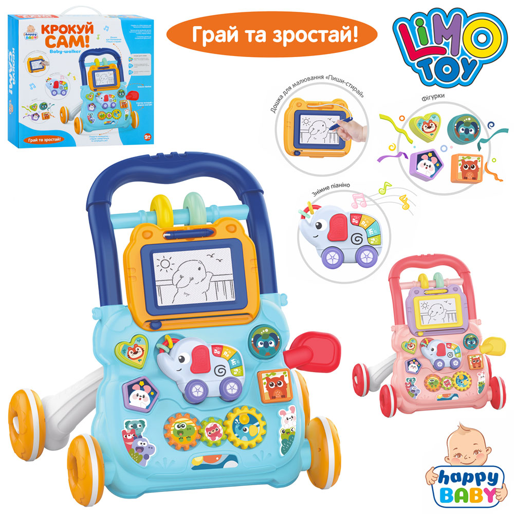 Каталка-ходунки HB 0041 AB шестерні, дощечка для малювання ч/б, муз., світло, бат., кор., 36-33-11см