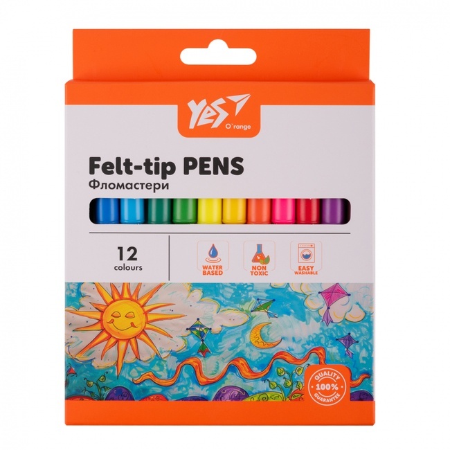 Фломастери YES 12 кольорів у карт. кор."Orange Line"