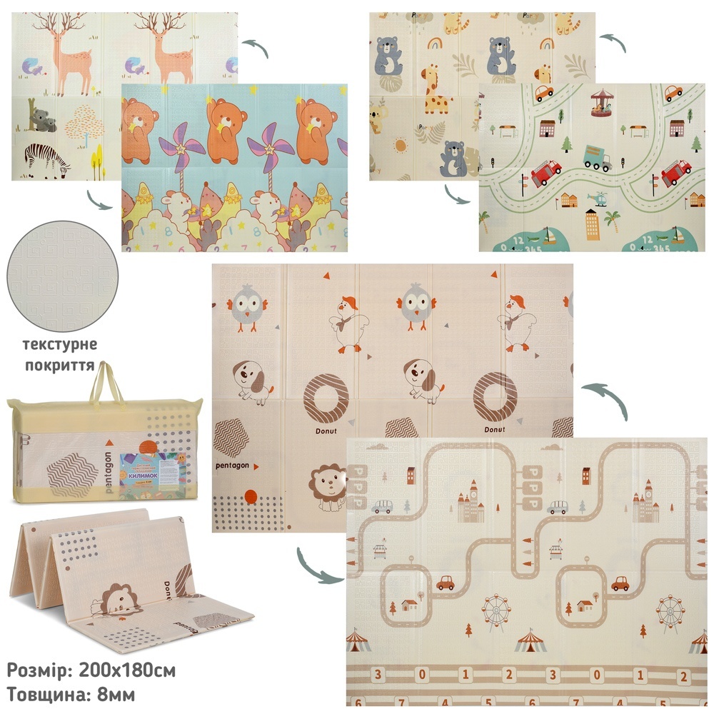 Килимок для немовляти 8808-3-4 70-45см,дуга,підвіс. 5шт(тварини-брязкальця),піаніно,муз.світло,батар