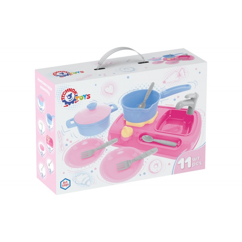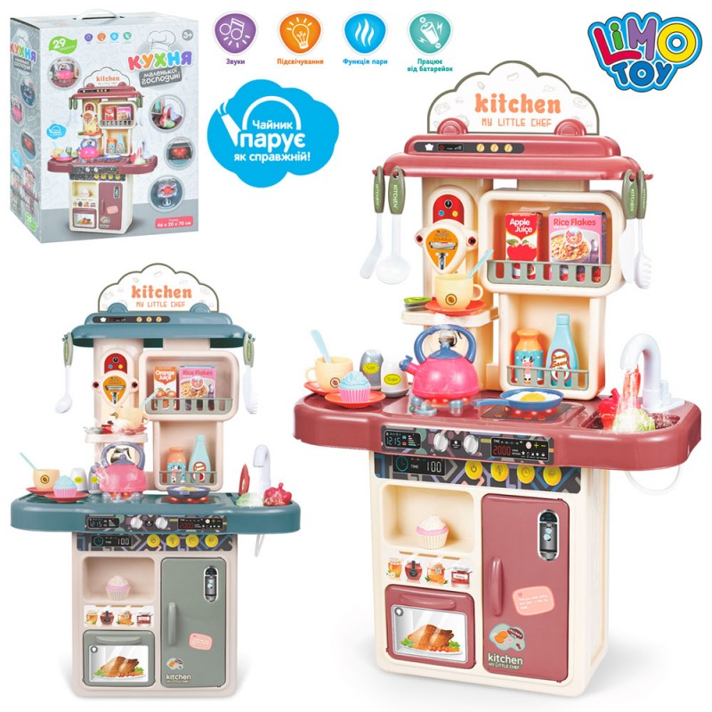 Кухня 16860AB плита, мийка, посуд, продукти, пара, 2 кольори, муз., світло, бат., кор., 46,5-35-14см