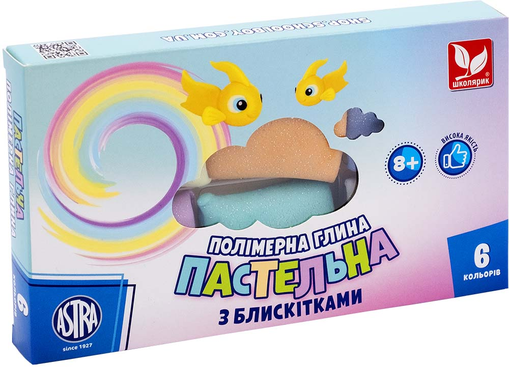 Полімерна глина з блискітками пастельні кольори 6 кольорів