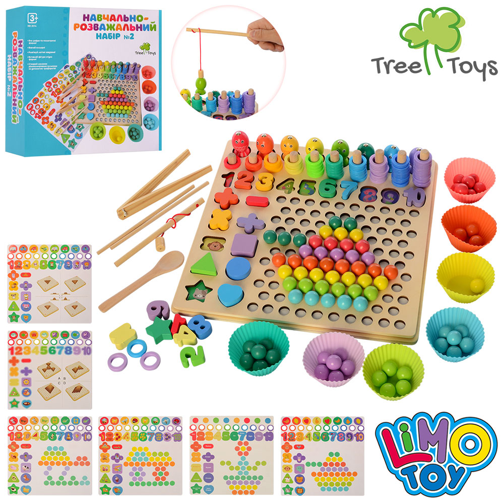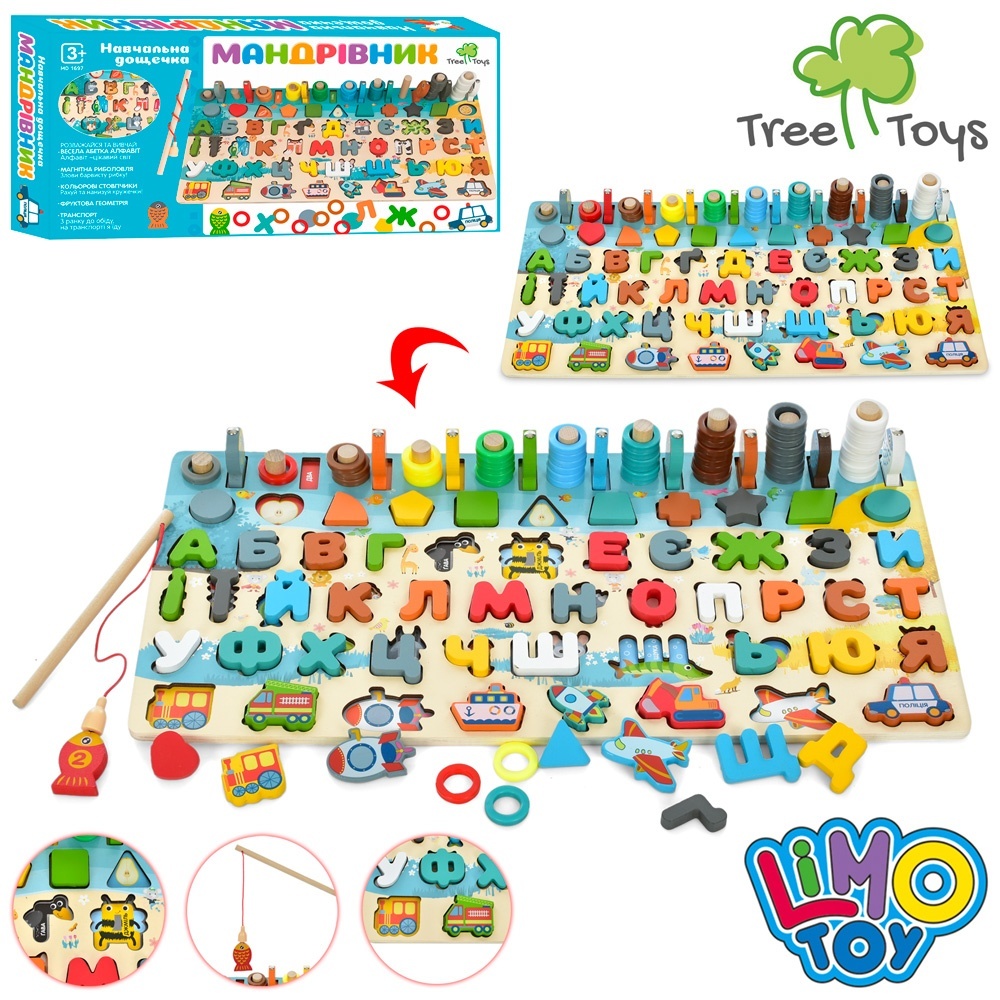 Дерев'яна іграшка Багатофункціональна дошка MD 0820 цифри,слова англ.,тварини,фігури,кільця,риболовл