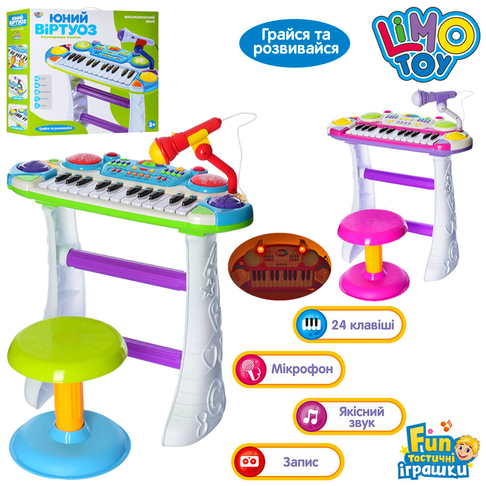 Синтезатор 883A-B-E-F 37клавіш,на ніжках,стільчик,мікрофон,запис, рег.гучн.,4кольори,муз.,світло,бат
