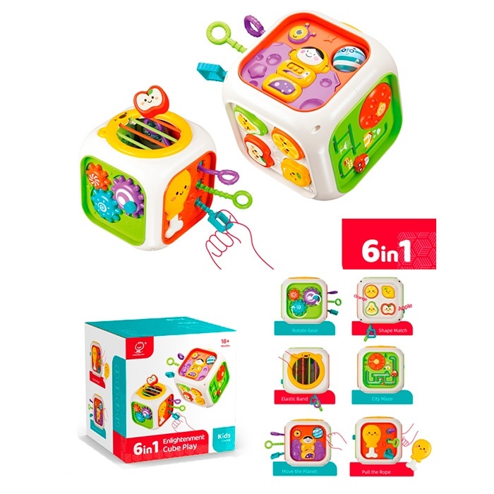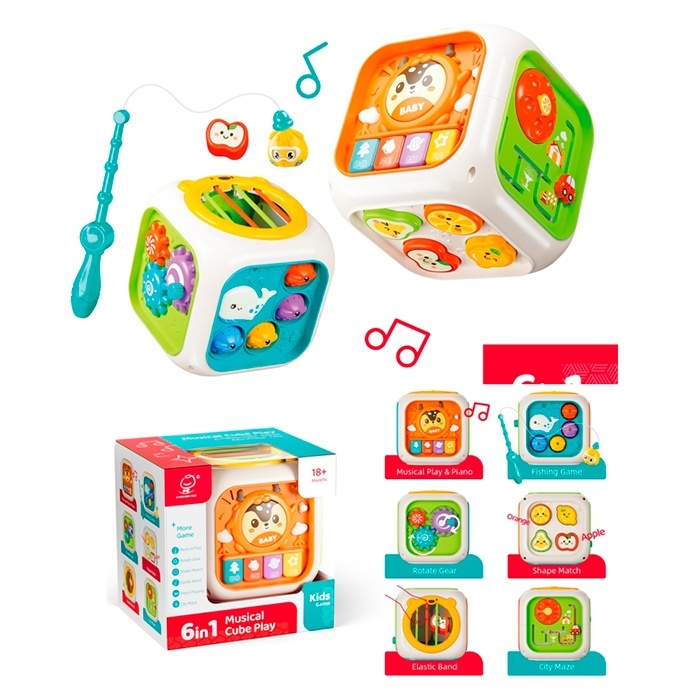 Гра 987 куб, 6в1, бізікуб,шестерні,сортер,грань-резинки,фігури,лабіринт,піаніно,риболов.,муз.,світло