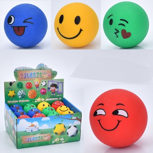 М'яч дитячий MS 4548 смайл, 6 видів/6 кольорів, 24 шт. в диспл., 26-13-20 см.
