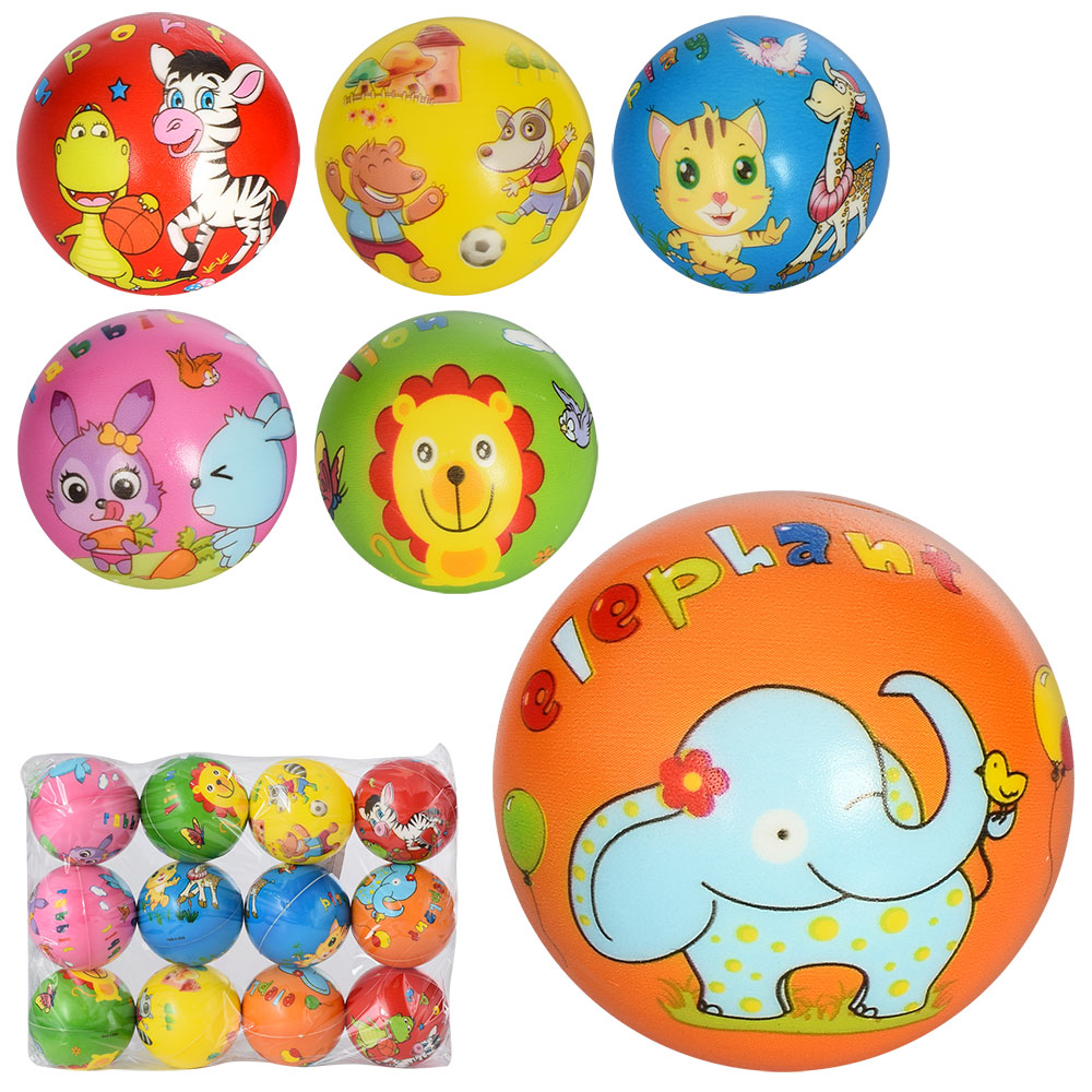 М'яч дитячий фомовий MS 3437-2 6 видів, тварини, упак. 12 шт., кул.