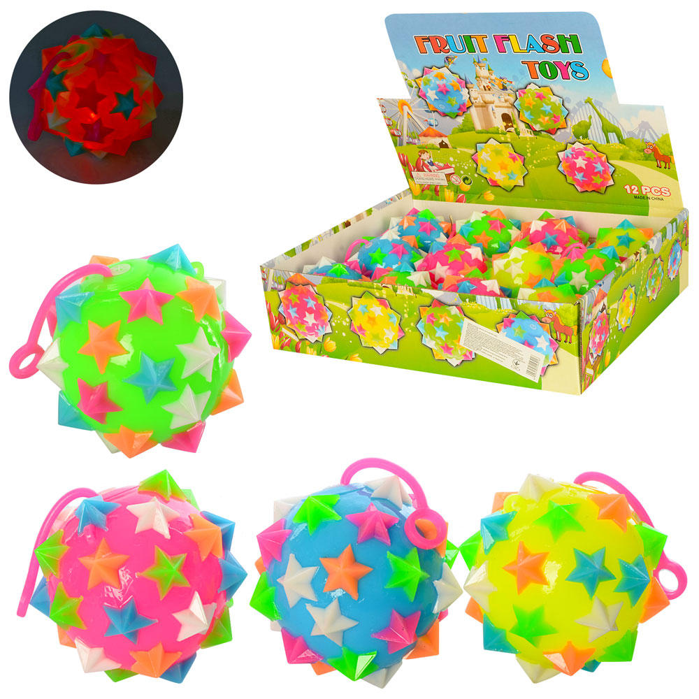М'яч дитячий MS 1905 довга ручка, пискавка, світло, бат., 12 шт. (4 кольори) в диспл., 34-25,5-9 см.