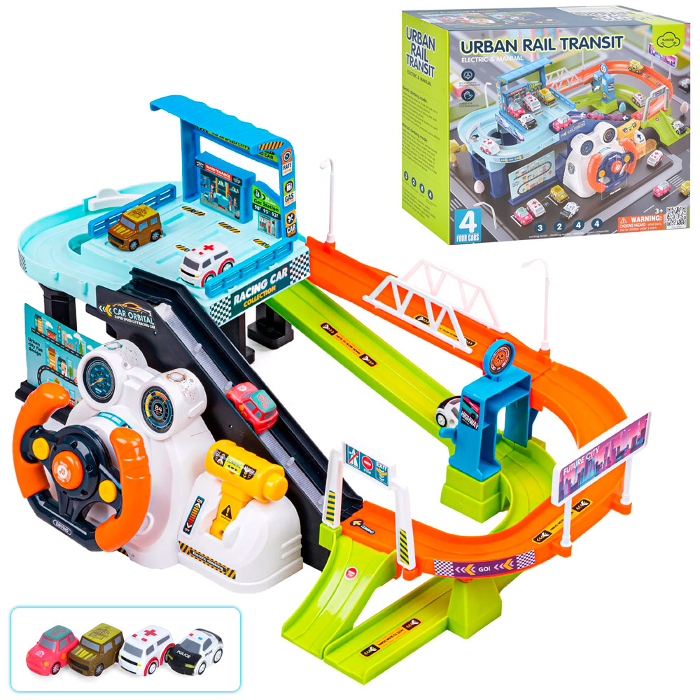 Трек A64-1A дистанція 51-32см.(126см.), машинки 2шт., від мережі 220V або бат., кор.,34,5-30,5-5,5см