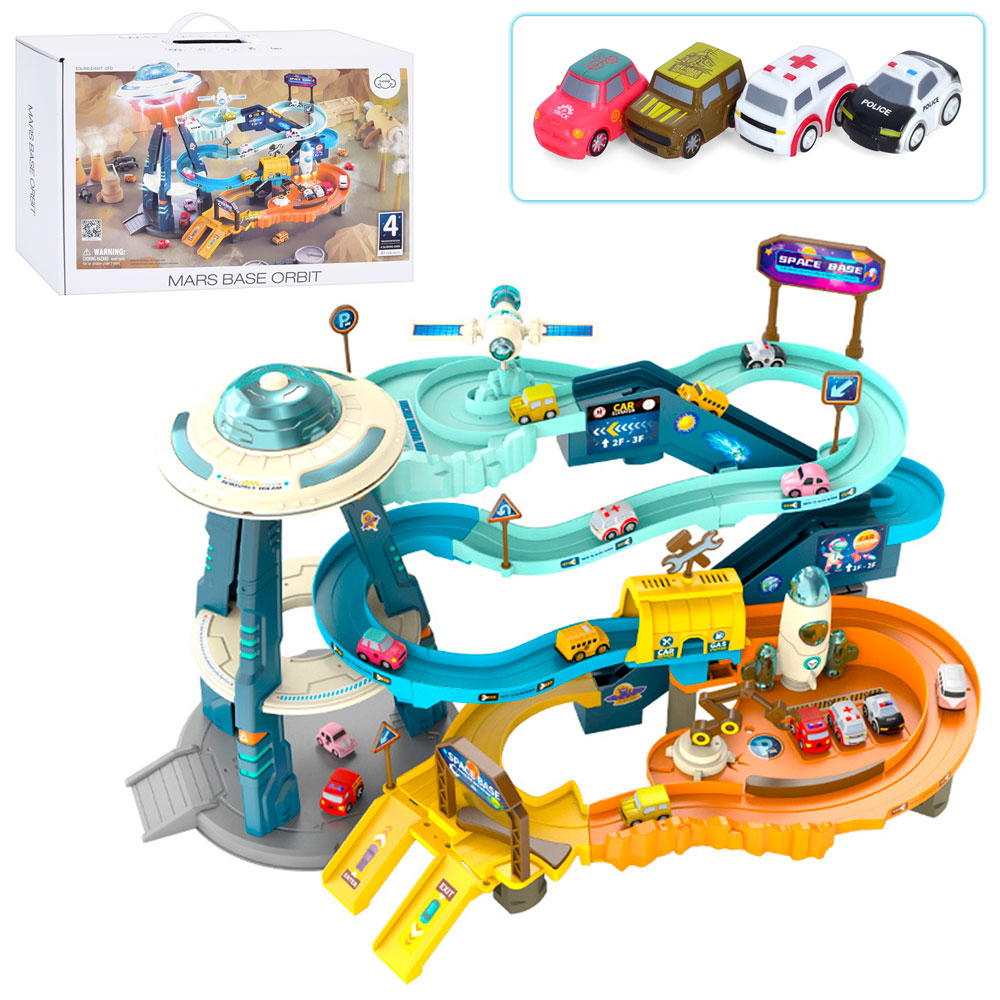 Гараж T905A космодром, машинка 4 шт., косм. корабель 3 шт., муз., світло, бат., кор., 42,5-28-14 см.