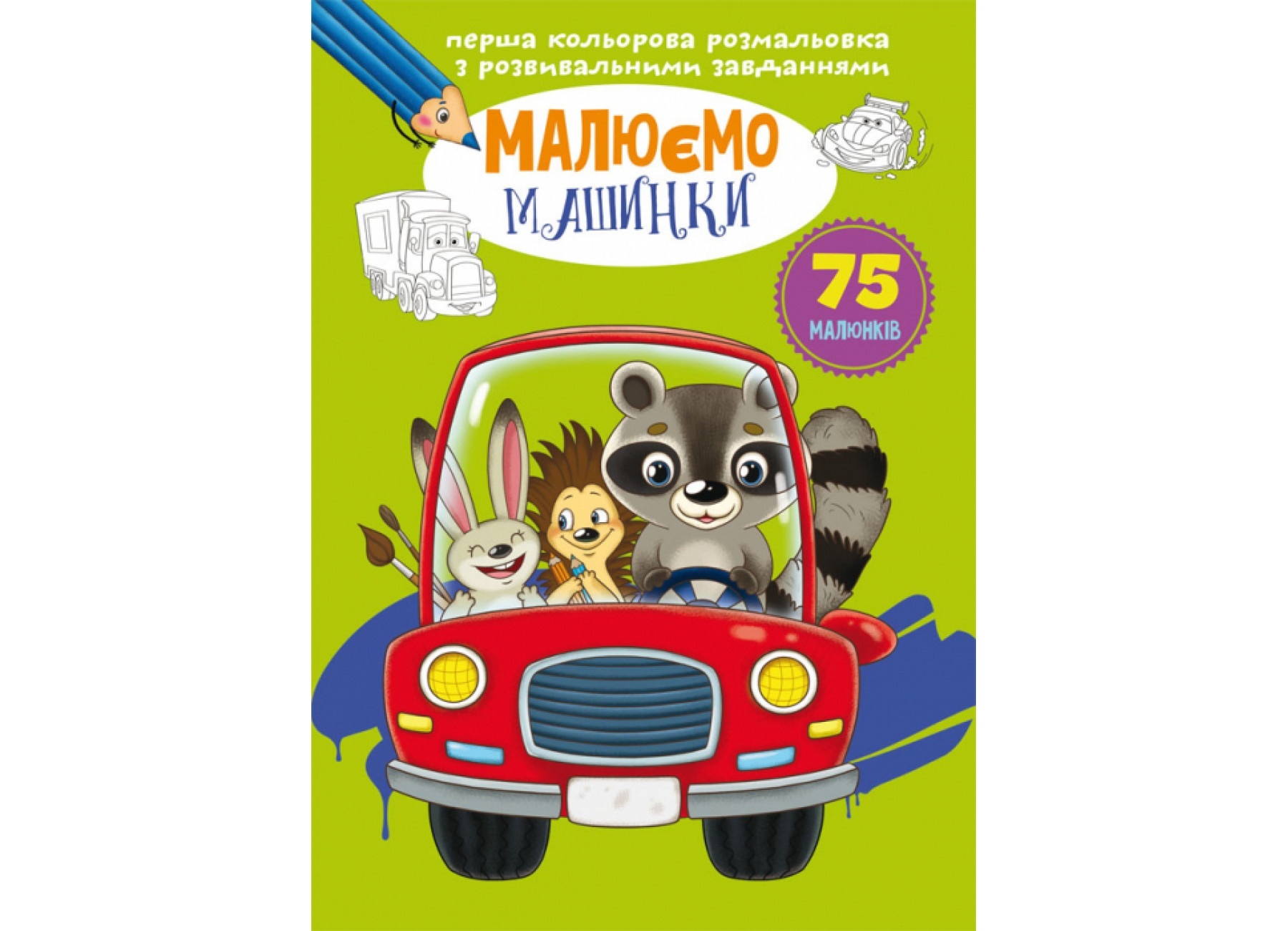 Книга "Перша кольорова розмальовка з розвивальними завданнями. Малюємо машинки"