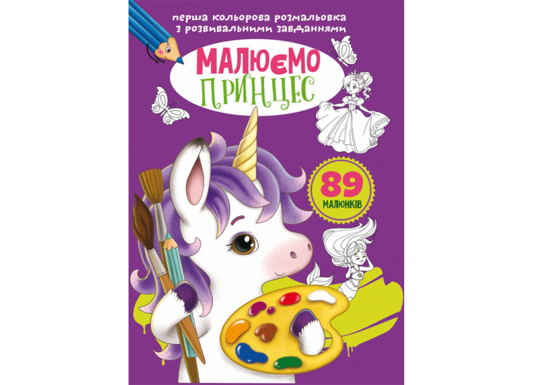 Книга "Перша кольорова розмальовка з розвивальними завданнями. Малюємо принцес"