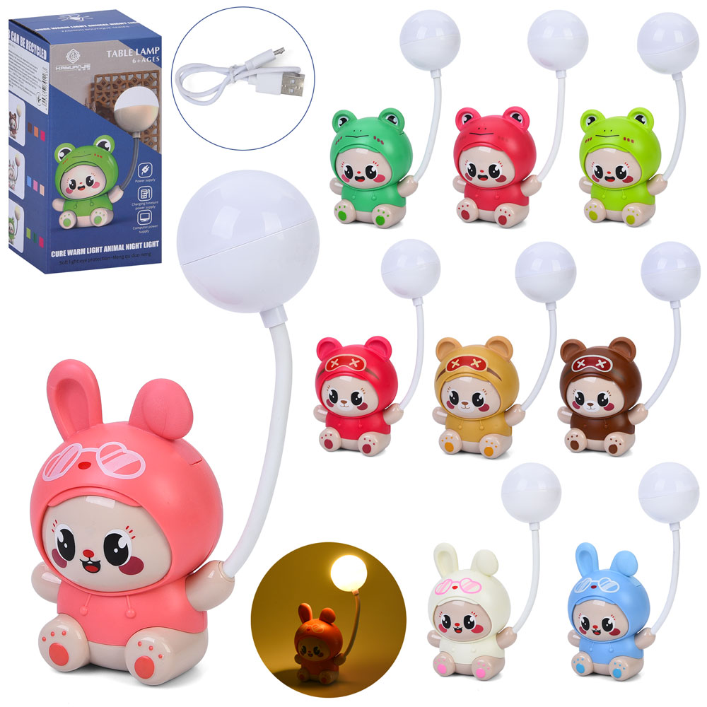 Нічник 8N50-27-29-32 2в1(годинник), тварина, від мережі (USB), 3 види (тигр, ведмедик, мавпа),в кор.