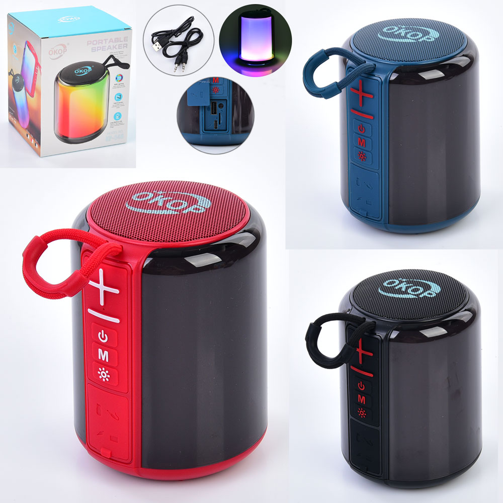 Колонка FG231107025D акум., 3,7V, 1200mA, 5W,TFслот,Bluetooth,USB,3кольори,світло,кор.,11,5-15-12см.