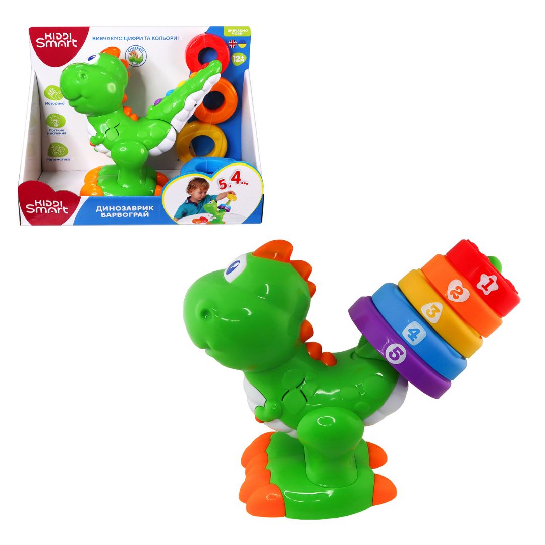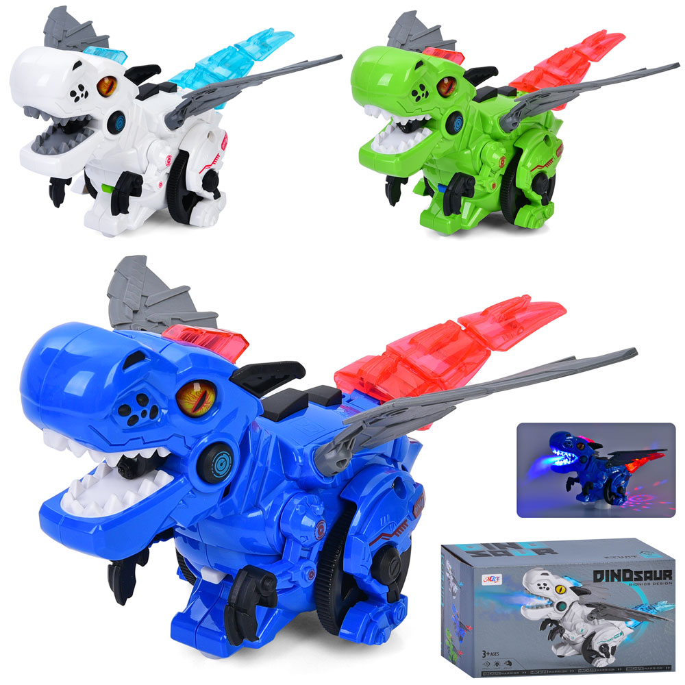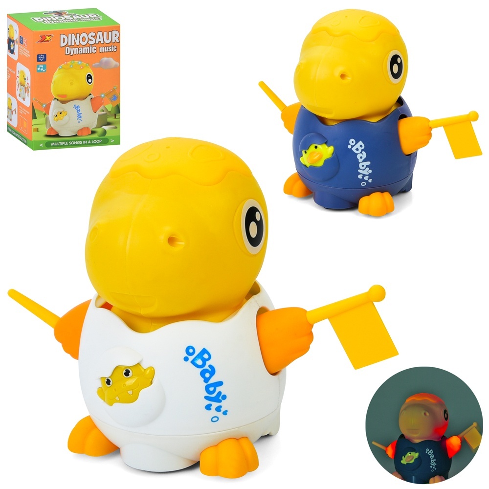 Музична іграшка 2366 динозавр, їздить/танцює,рух.деталі,2 кольори,муз.,світло,бат.,кор.,11-15,3-10см