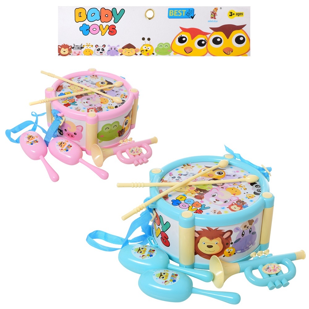 Музичні інструменти 890-18 барабан, дудка, маракаси, 2 кольори, кул., 28,5-32-10 см.