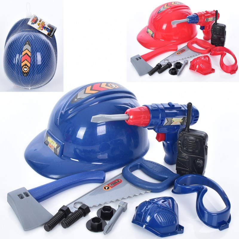 Набір інструментів 113-1 шуруповерт, каска, пила, сокира, маска, рація, сітка, 22,5-12-17 см.