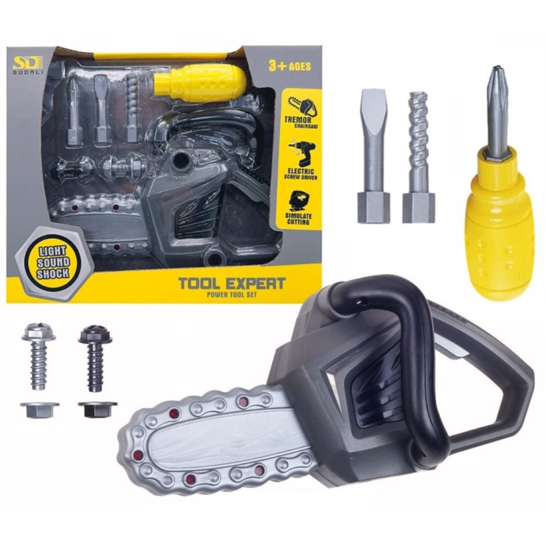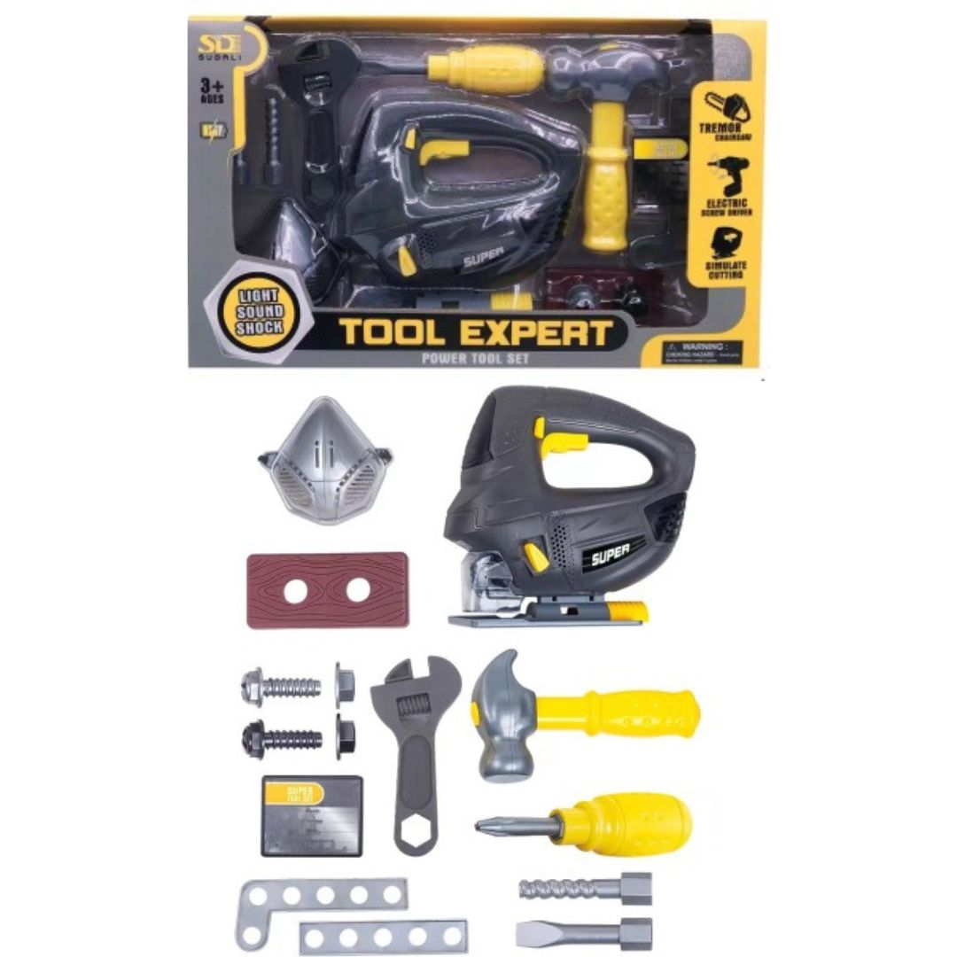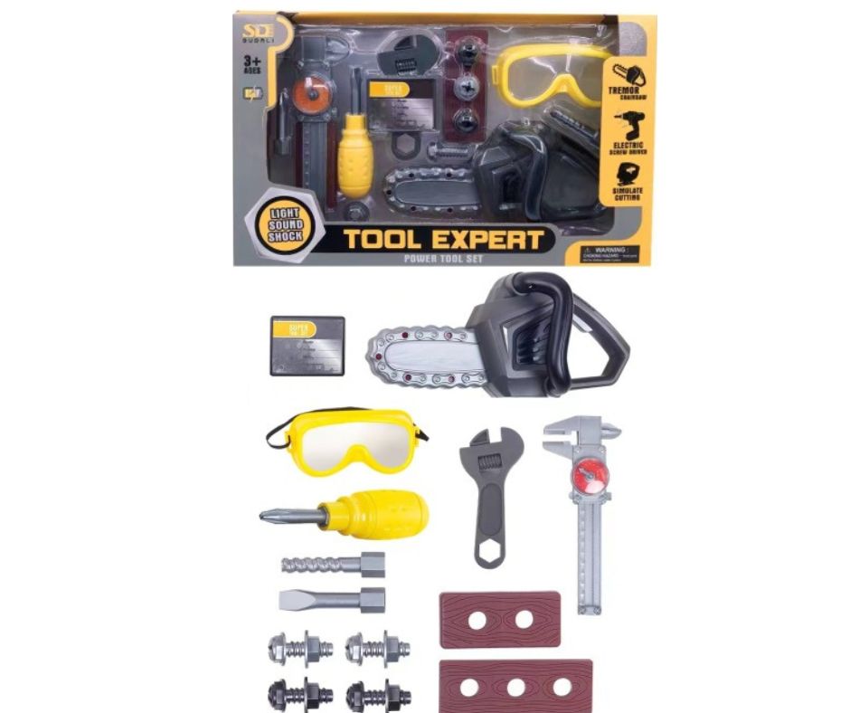 Набір інструментів 6803-1 пила, окуляри,викрутка,болти,гайк.ключ,штангенциркуль,муз.,світло,бат.,кор