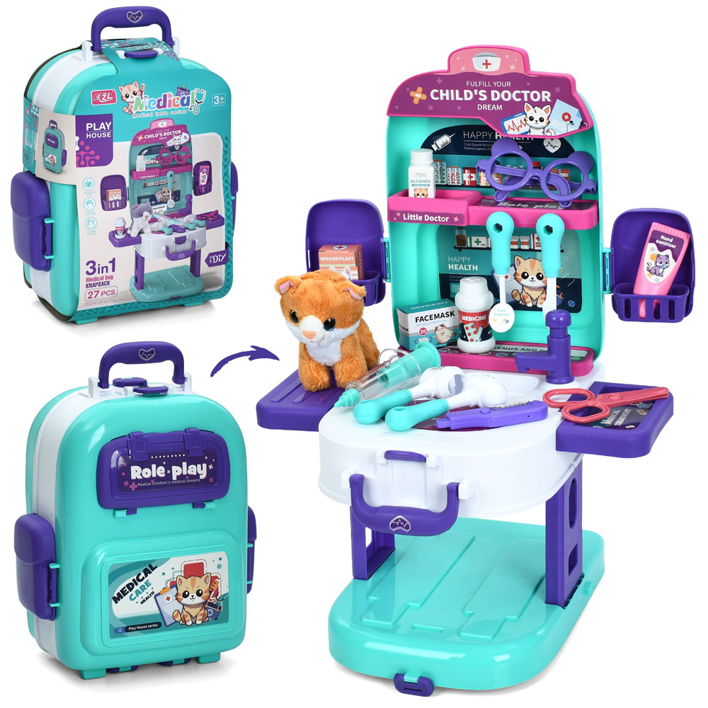 Набір гральний «грумер» T2157-9 набір лікаря,3 в1(стіл,чемодан),кіт(плюш),27пр.,карт.обг.,23-31-13,5