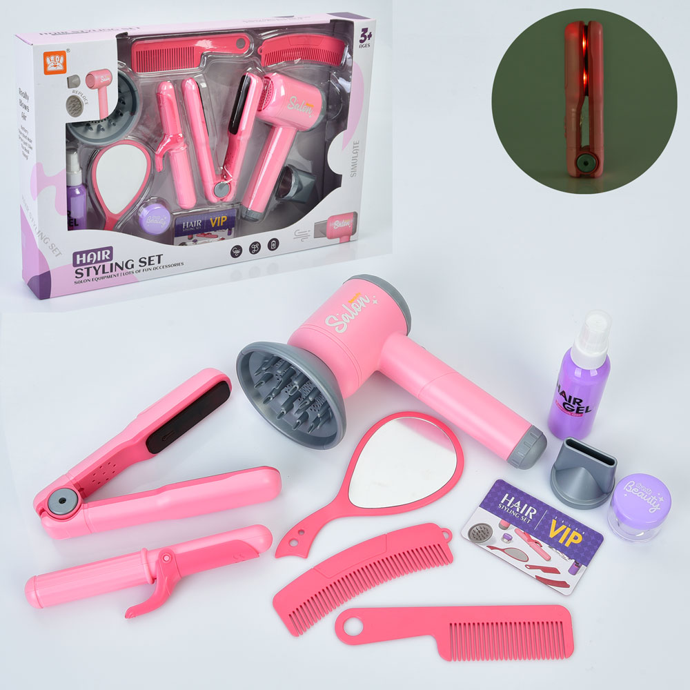 Набір аксесуарів LD-338B набір перукаря,фен-повітря,плойки,муз.,світло,гребінці,дзеркало,бат.,кор.45