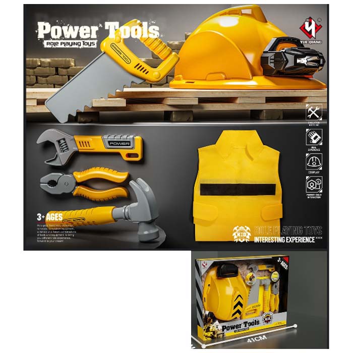 Набір інструментів T007 каска,жилет,пила,молоток,плоскогубці,гайк.ключ,світло,бат.(табл.),кор.,41-31