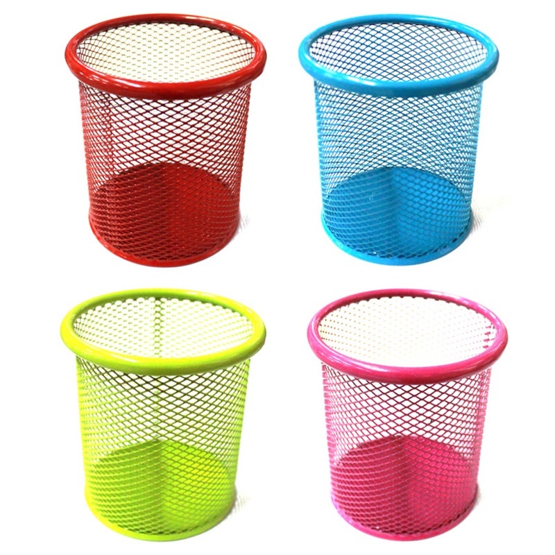 Стакан для ручок, металевий, круглий, 9,5*7,5см, кольоровий, Leader