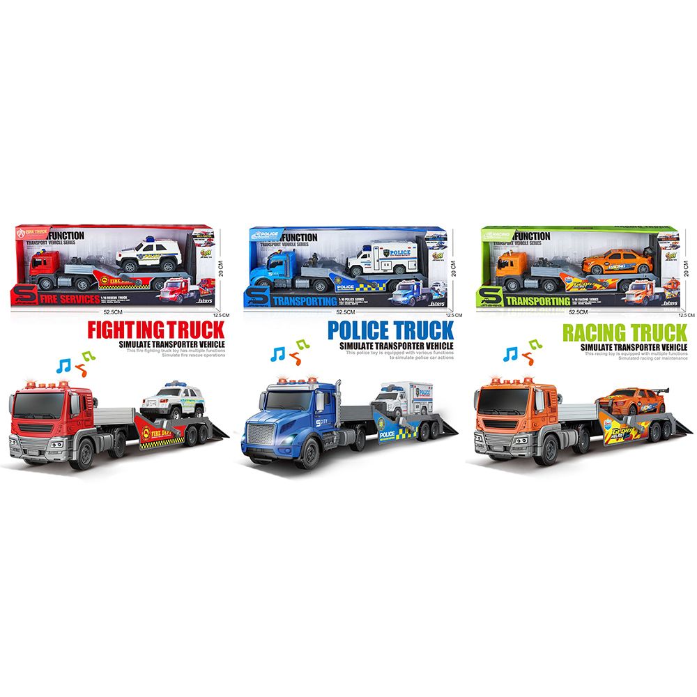 Трейлер JS202A-2CS-2D-1 інерція,1:16, звук,світло,машина,гумові колеса,3 види.бат.кор.52,5-20-12,5см