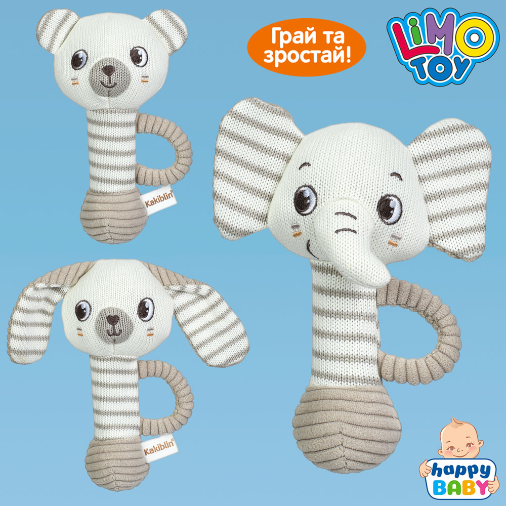 Брязкальце м'яке HB 0097 ABC тварина, пискавка, шуршить, 3 види(слон,ведмідь, заєць),кул.,16-22-6см.