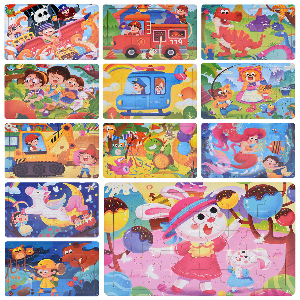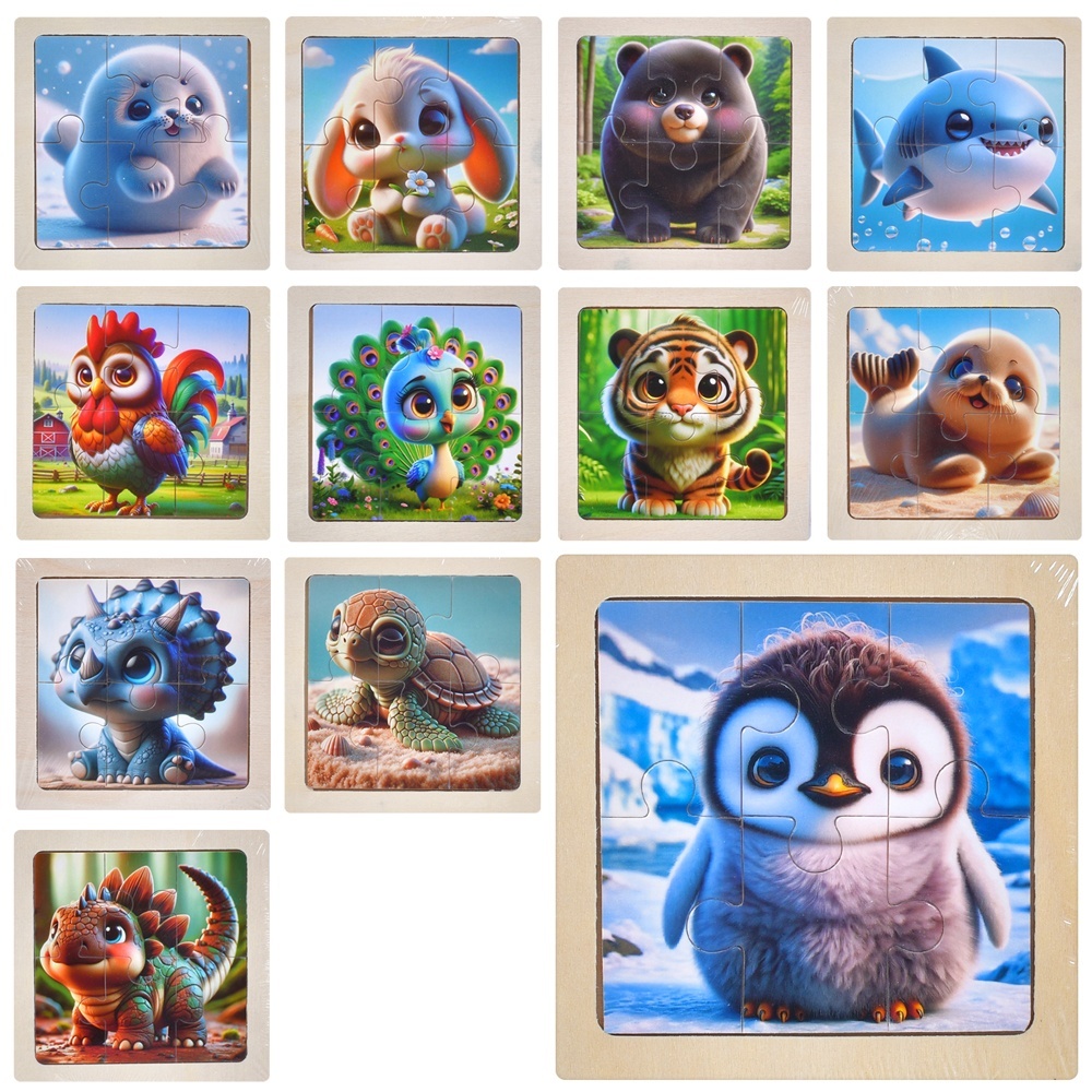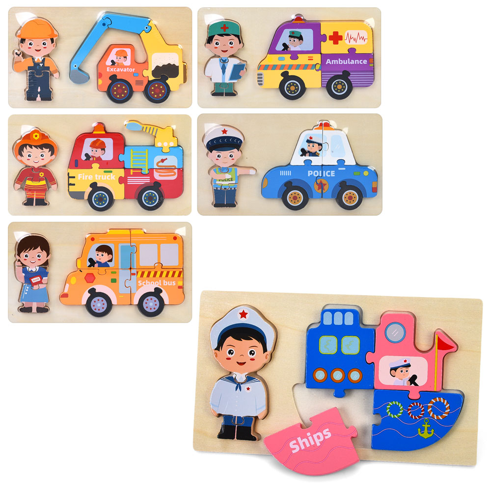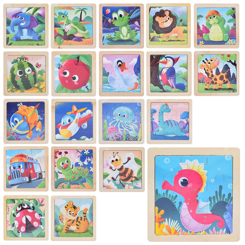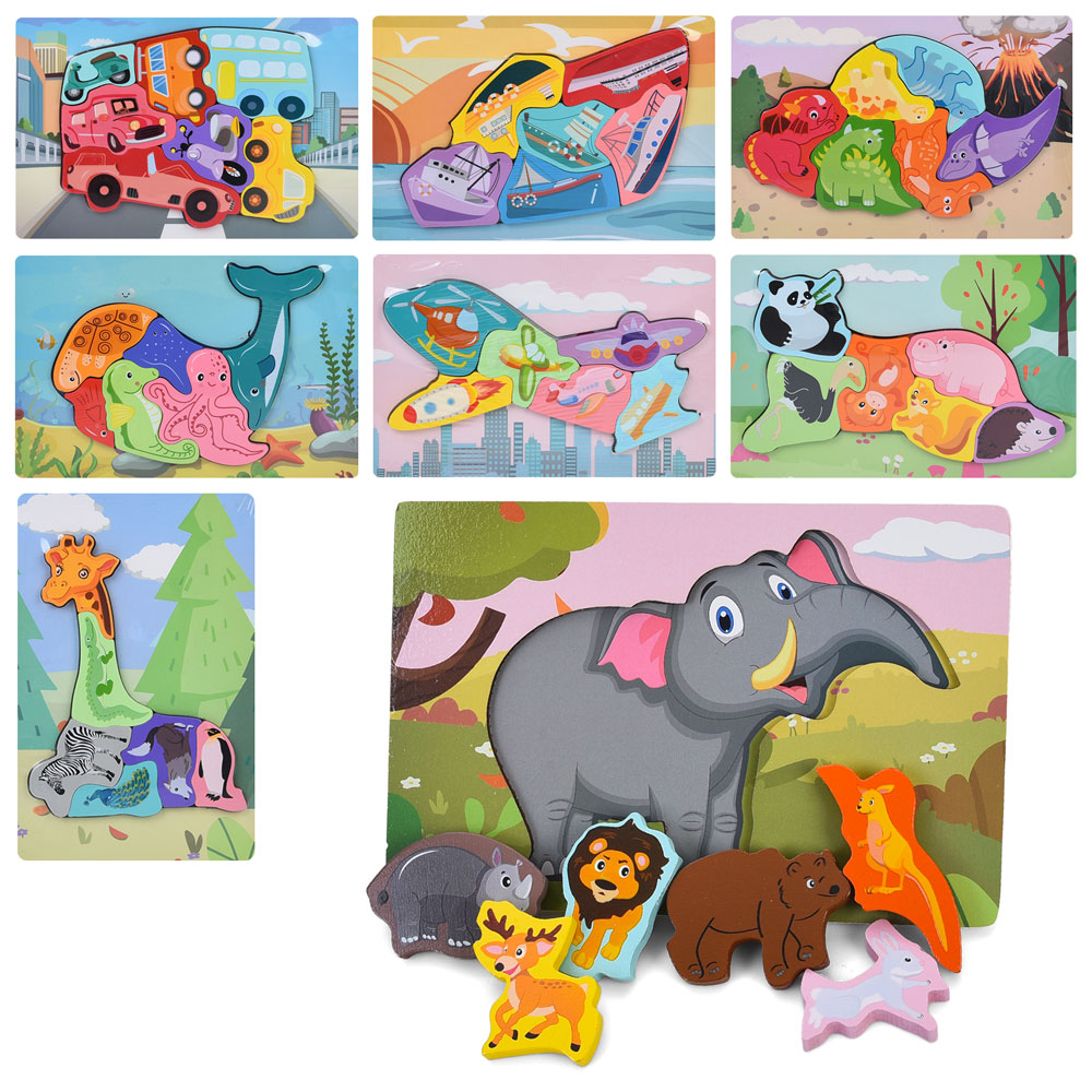 Дерев'яна іграшка Пазли MD 0744 6дет, 6в1, 8 видів(транспорт,тварини,динозаври),у пакеті,22,5-15-1см
