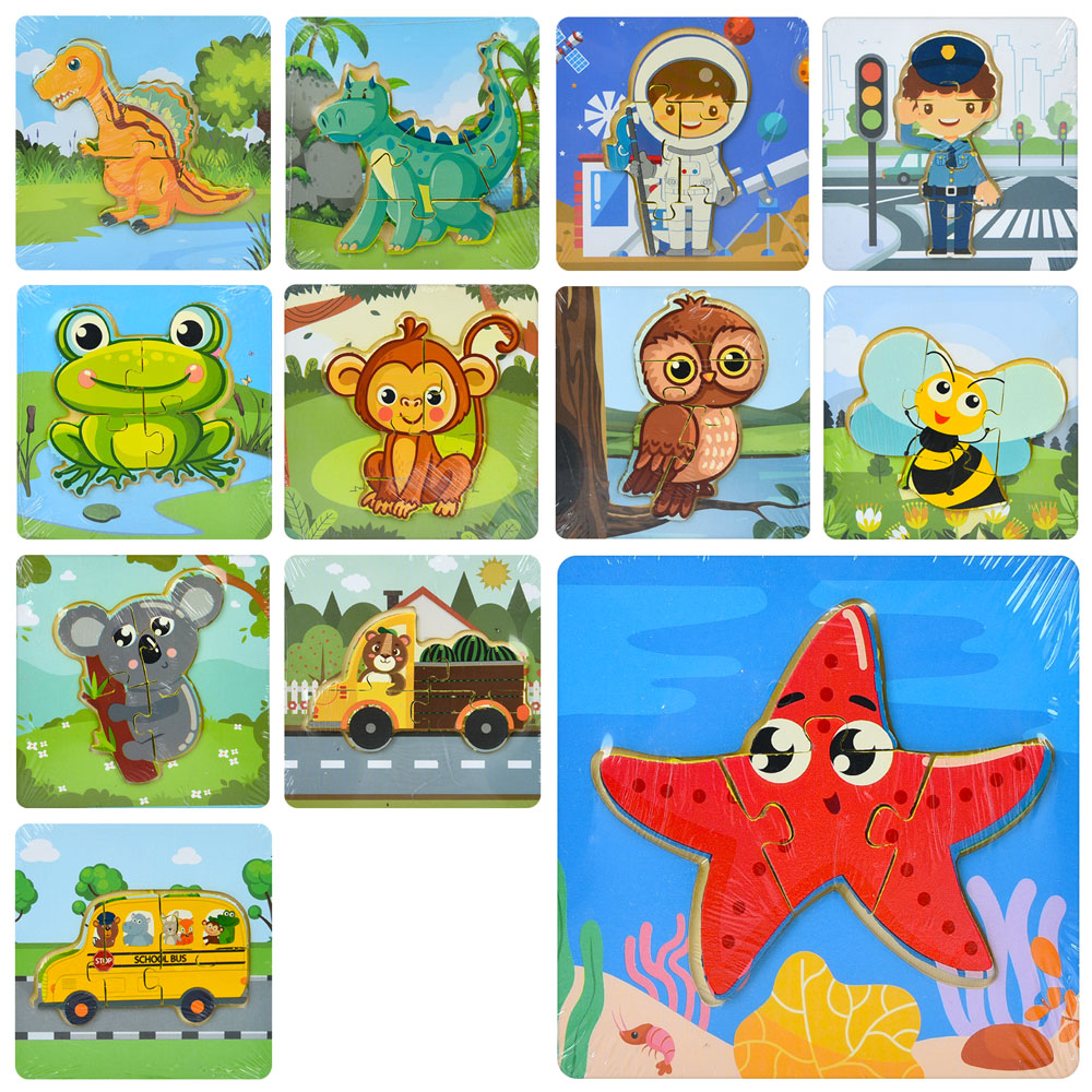 Дерев'яна іграшка Пазли MD 1974 4 дет., мікс видів(тварина,транспорт,морськ.мешканець,динозавр),кул.